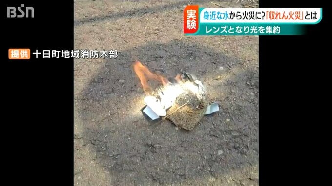 このように水などが“レンズの役割”をはたして起きる火事を「収れん火災」と呼びます。でも、本当に太陽と水で火が起こるのでしょうか?