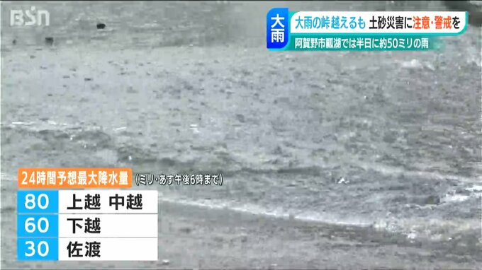 新潟地方気象台によりますと大雨の峠は越えたということですが、新潟県内にはこれまでの大雨で地盤の緩んでいる所があり、上越では6日夜はじめ頃にかけて土砂災害に注意・警戒が必要です。また6日夜はじめ頃にかけて雷を伴い1時間に30ミリの激しい雨の降るところがありそうです。雨雲が停滞した場合は、大雨警報を発表する恐れがあります。