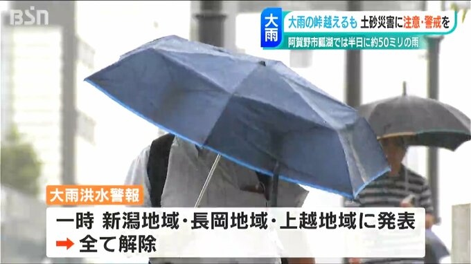 新潟地域や長岡地域、上越地域には一時、大雨洪水警報が発表されていましたが、現在は全て解除されています。