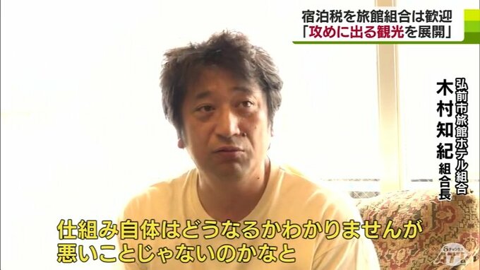 弘前市での具体的な税額や導入時期についての本格的な議論はこれからですが宿泊税が導入されれば東北で初めてです。弘前市が積極的に検討している「宿泊税」について、弘前市旅館ホテル組合の木村知紀組合長は歓迎をしています。
