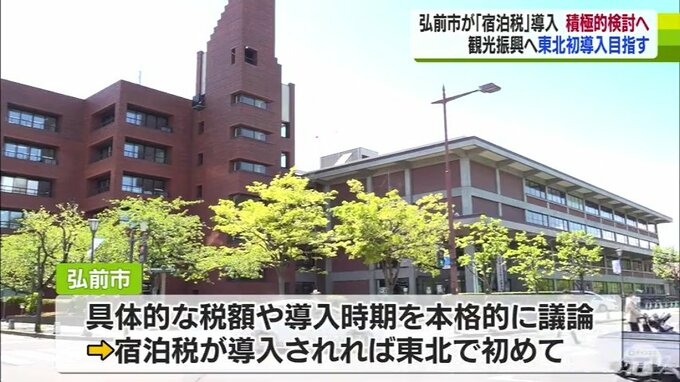 ホテルや旅館の宿泊者に課し観光振興のために使われる「宿泊税」について青森県弘前市が積極的に導入を検討していると明らかにしました。導入されれば東北で初めてとなります。
