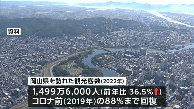 岡山県観光課がまとめたもので去年、岡山県を訪れた観光客は1499万6000人でおととし(2021年)に比べ約400万人、率にして36.5%増加しました。コロナの感染が落ち着く中、JR各社と連携して行ったデスティネーションキャンペーンや瀬戸内国際芸術祭などの観光需要の喚起策により回復したとみています。