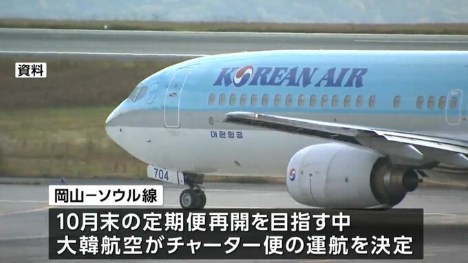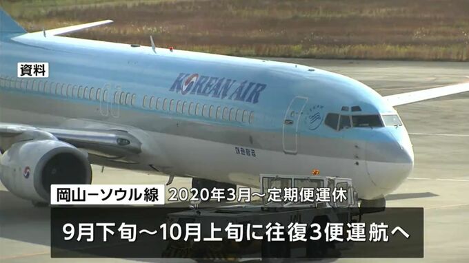 定期便の再開を目指している岡山空港のソウル線で、いち早く9月と10月にチャーター便が運航されることが決まりました。路線の再開は3年半ぶりとなります。