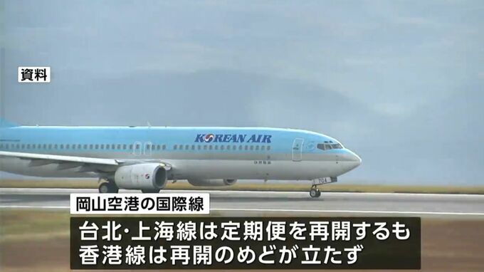 岡山空港の4つの国際線を巡っては、台北線と上海線がすでに定期便の運航を再開していますが、残る香港線については現時点で再開のめどが立っていません。