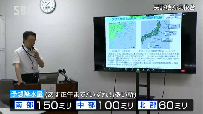 台風13号は8日夜から9日にかけ長野県内に最も接近する見込みです。