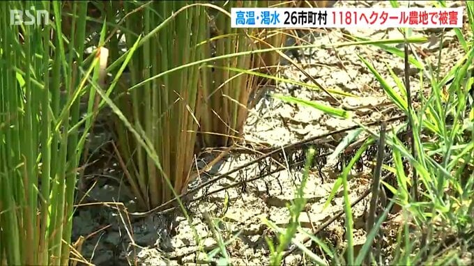 今夏の高温と渇水による農作物の被害についての新潟県発表によりますと、9月5日現在の被害市町村の数は、8月29日の時点と比べて24から26に増え、農地面積は361ha増えて1181haになっています。