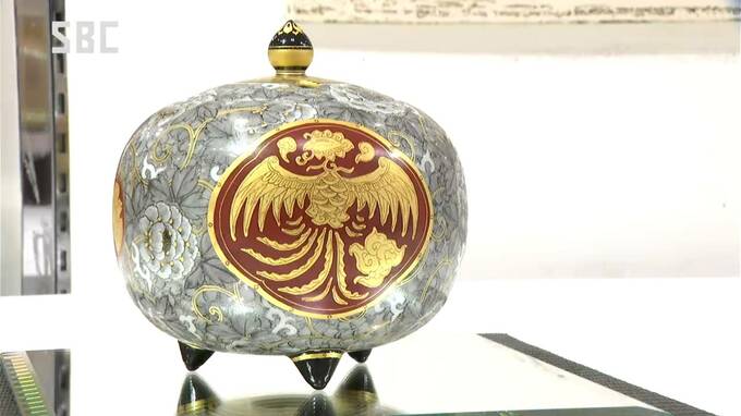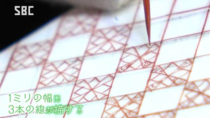 九谷焼の「赤絵細描(あかえ・さいびょう)」と呼ばれる技法で、1ミリの幅に3本の線が描けるほどの細さです。