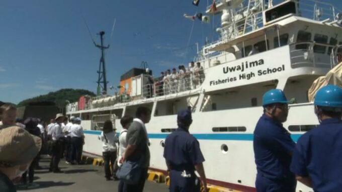 愛媛県立宇和島水産高校の実習船えひめ丸が、ハワイ沖での航海実習に向け7日宇和島港を出航しました。2ヵ月にわたる実習に臨むのは、宇和島水産高校の海洋技術科や専攻科の生徒など37人で、7日は宇和島港の樺…