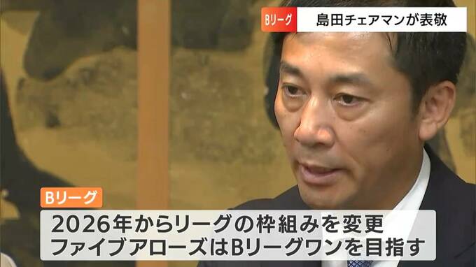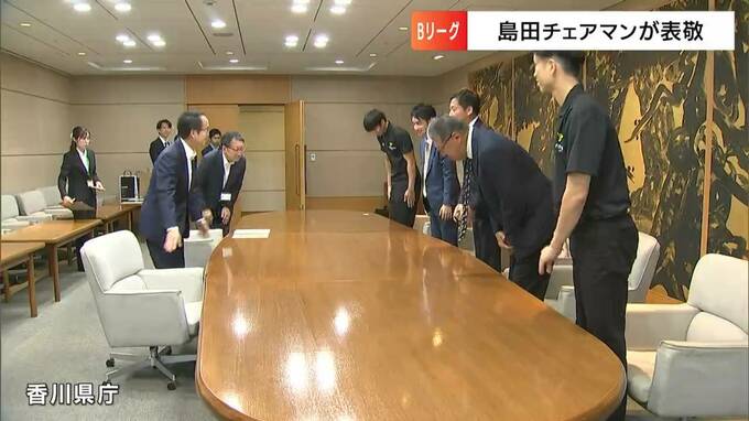 香川ファイブアローズの生岡社長らとともに香川県庁を訪れた、Bリーグの島田慎二チェアマンです。Bリーグは2026年から新たな枠組みになることが決まっていて、ファイブアローズは上から2つ目の「Bリーグ・ワン」を目指しています。