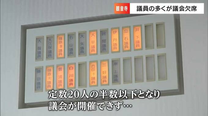 議長の不信任案が可決された観音寺市議会で、混乱が続いています。議長が辞任を拒否したため、議員の多くが議会を欠席、正常に議会が運営できない状態となっています。篠原議長への不信任案が可決された中、きょう…