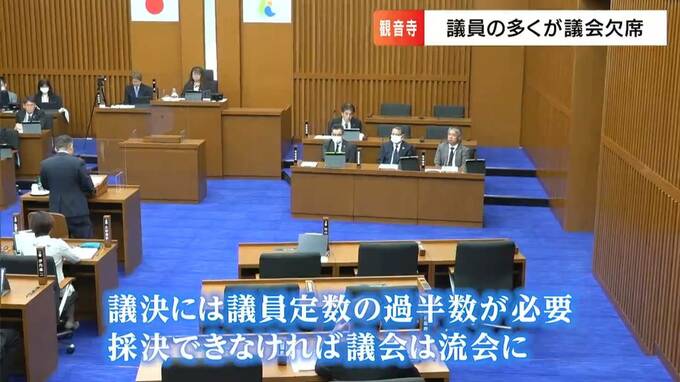 議長の不信任案が可決された観音寺市議会で、混乱が続いています。議長が辞任を拒否したため、議員の多くが議会を欠席、正常に議会が運営できない状態となっています。