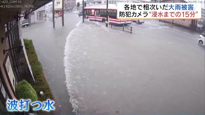 福島県内は6日、激しい雨に見舞われ、福島市では各地で浸水が発生するなど大雨の被害が出ました。付近の防犯カメラは、15分ほどで浸水した様子を捉えていて、短時間で水が押し寄せたことが分かりました。6日、県内…