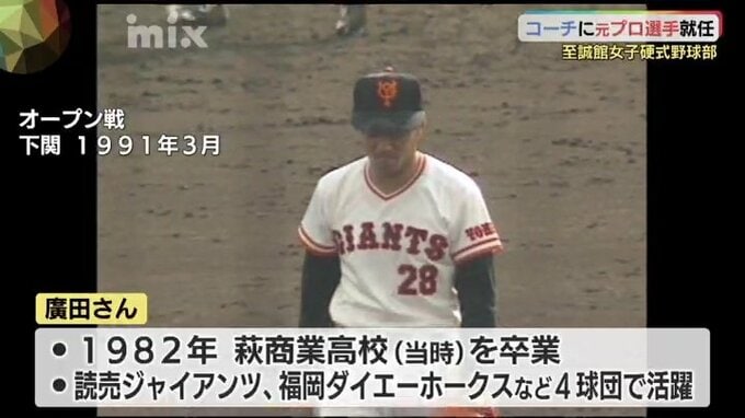 全国でも数少ない女子硬式野球部のコーチに、地元出身の元プロ野球選手、廣田浩章さんが就任しました。