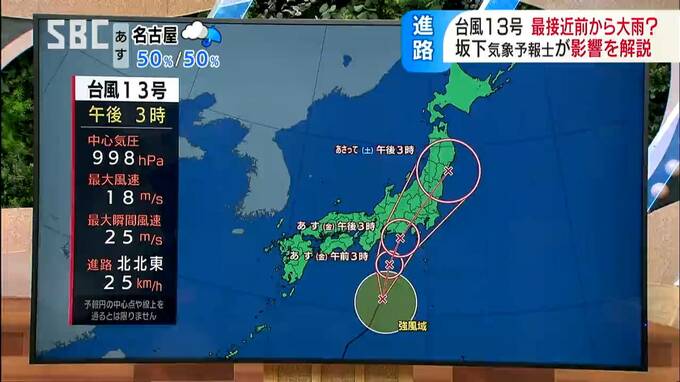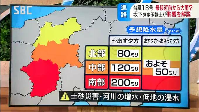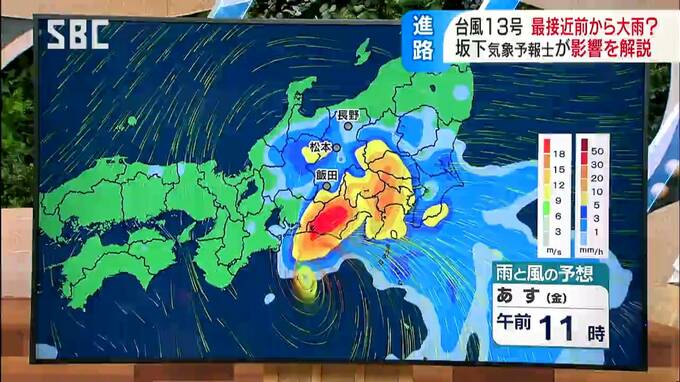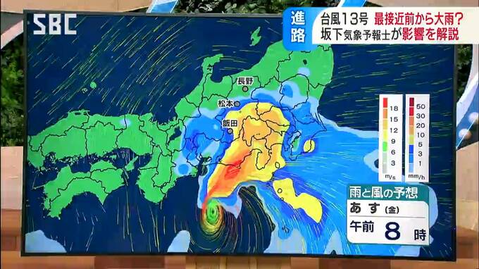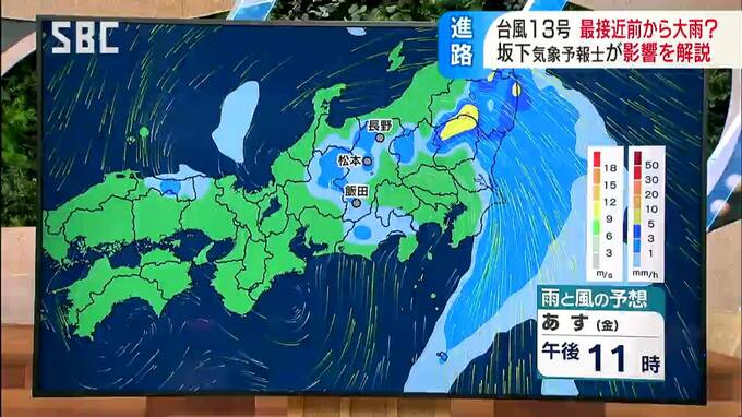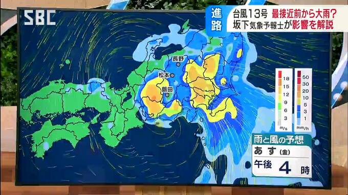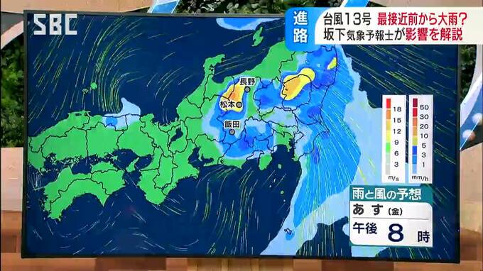 長野県に接近する見込みの台風13号の今後の進路や、雨の予想などを、SBCニュースワイドの坂下悠乃気象予報士が解説します。