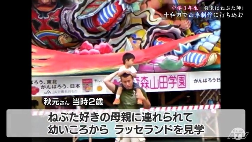 秋元さんは幼いころからねぶた好きの母親に連れられて青森市のラッセランドを訪れていました。その後、次第に制作にも興味を持つようになり第5代ねぶた名人の千葉作龍さんが講師をつとめた制作教室などに参加。熱中する秋元さんを家族もサポートしました。
