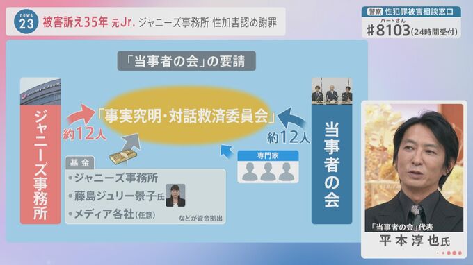 自分が社長として、長として、この重責を担う、というメッセージについては、何ら異存はありません。命をかけて、長い時間をこれから費やしていくんだろうと。その意識については、当然、歓迎すべきですが、まだスタートラインには立っていない。私たち、当事者の会が求めている要請があります。被害者と加害者が共に携わりながら、救済の方法、手段などを、一緒に考えていきませんかというものを、4日、我々から、提案というか、このような形でお願いしますと。それが現状、相手方に伝わっているのかどうか、返事をいただけていないので。そういったことも含めて、今後、いろいろわかってくるのではないかと。ジャニーズ事務所側、いわゆる加害者側に、一方的に、あれもこれも決めないでもらいたい、という意思の表れです。