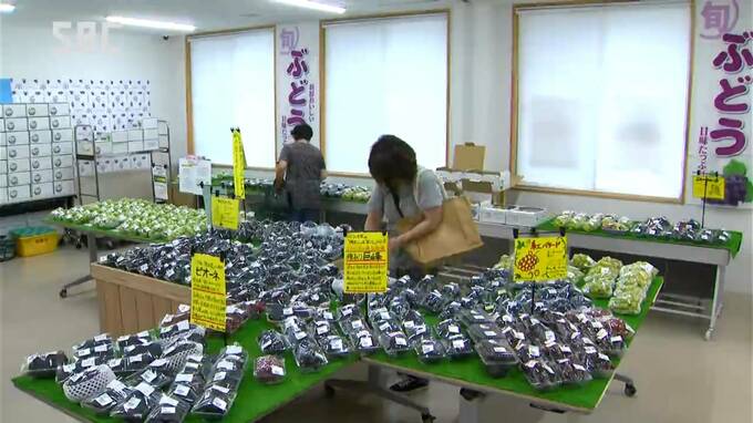 生坂村の道の駅「いくさかの郷」では例年より1週間ほど早く露地物の出荷が始まり、村内の農家が丹精を込めて育てたブドウが毎日届けられています。