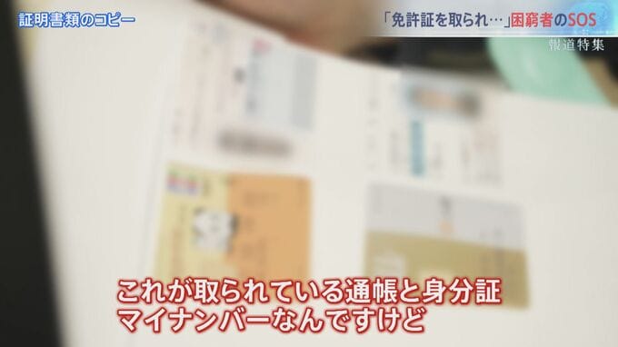 「これが取られている通帳と身分証とマイナンバーのコピーなんですけど、これじゃ病院にかかれないんですよ。提出しなきゃならない紙なんだけど、ここにマイナンバーを書いてこいって。でもマイナンバーがないんで…」
