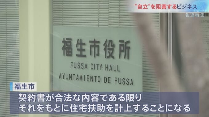「貧困ビジネスを立証することは難しい。契約書が合法な内容である限り、それをもとに住宅扶助を計上することになる。生活保護の申請権は保証されているため、まず第一に助けるという視点から申請を受けている」