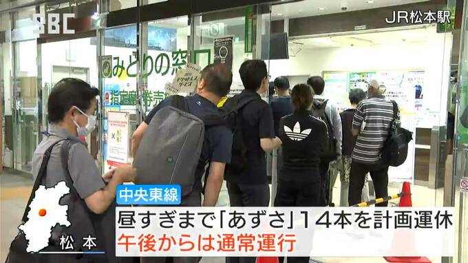 台風13号の接近で、JR東日本は昼過ぎまで中央東線の特急「あずさ」14本を計画運休しましたが、午後からは通常通り運行されています。