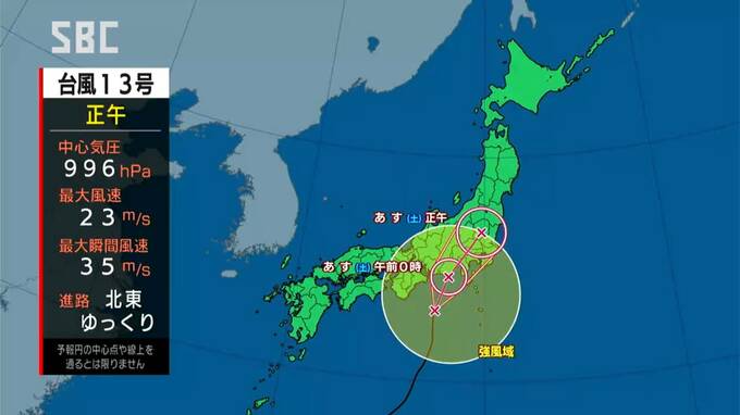台風13号はゆっくりとした速さで北東へ進んでいて、8日の夜にも東海に接近し上陸する見込みです。