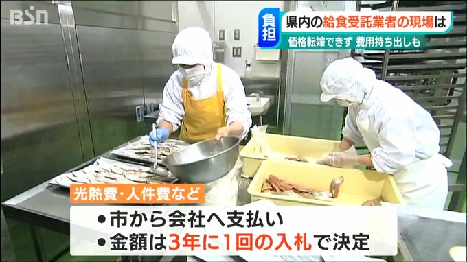 物価高騰により、食材費は2021年と比べて全体で2割ほどかさんでいて、給食費を超える分は現状、会社が持ち出しで対応しているといいます。