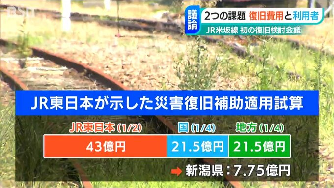 去年8月の豪雨で被災したJR米坂線の復旧を検討する会議が開かれました。JR東日本は「復旧に向けて検討する」としたものの2つの課題を提示。「復旧費86億円」と「鉄道利用者の少なさ」です。
