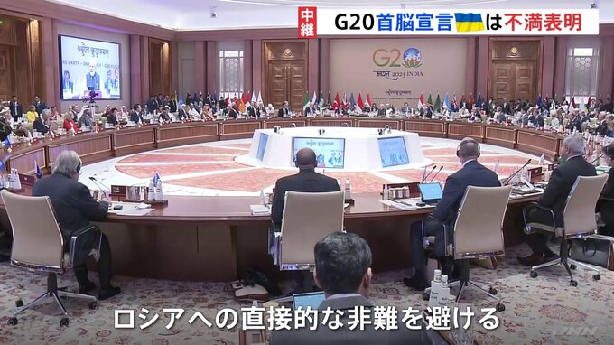 G20=主要20か国の首脳会議で採択された首脳宣言について、議長国インドは成果を強調する一方、ロシアへの直接的な非難を避けたことにウクライナは不満を表明しています。インドから中継です。首脳宣言についてけさ…