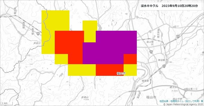 20:26、広島地方気象台は福山市に大雨警報(浸水害)を発表しました。