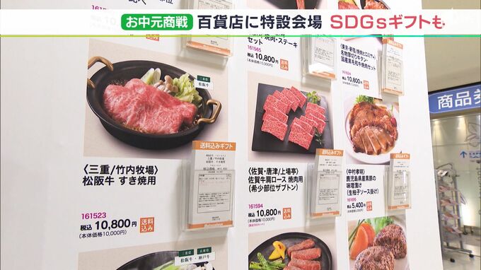 静岡市の百貨店では、お中元商戦が本格的にスタートしました。松坂屋静岡店では、6月15日からお中元の特設会場を設け、およそ2800点を扱っています。<松坂屋静岡店 鏡詩織さん>「今年は、『あすへつなぐ幸せギ…