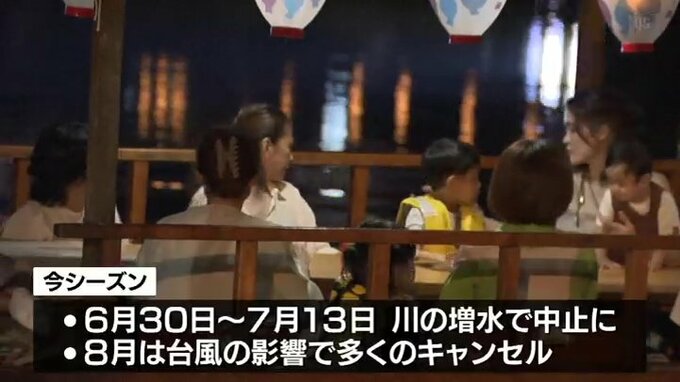 今シーズンは6月30日から7月13日まで雨で川が増水したため中止を余儀なくされたほか、8月は台風の影響で多くのキャンセルが出ました。