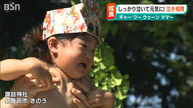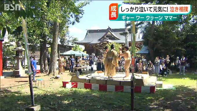 新潟県 新発田市の神社で10日、子どもの泣き声を競うことで健康と健やかな成長を願う「泣き相撲」が開かれました。