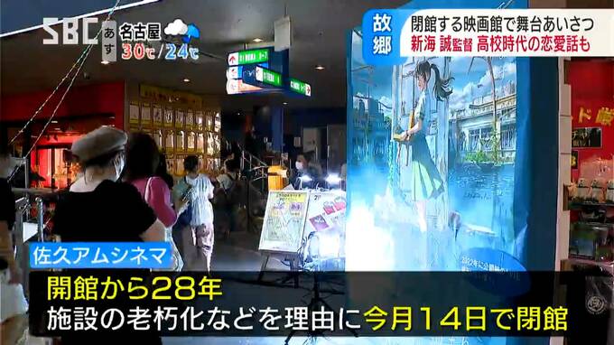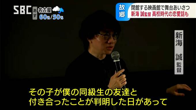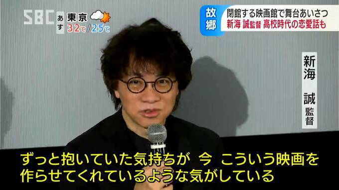小海町出身の新海誠監督が、9月14日に閉館する佐久市の映画館を訪れ、学生時代の恋愛話など地元の思い出を語りました。