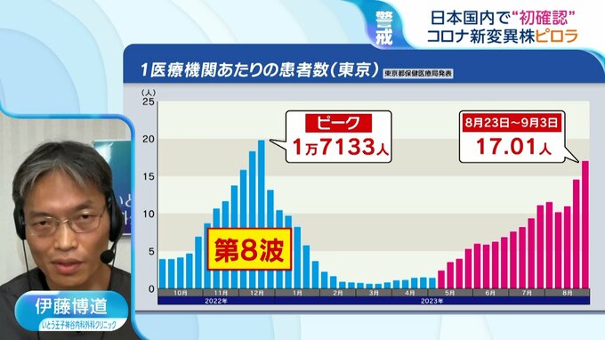 エリス(EG.5株)という、ピロラより一歩手前の株が今主流になって感染が広がっている状況だと思います。