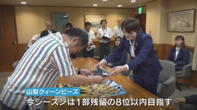 山梨クィーンビーズは今シーズン、1部残留の8位以内を目標にするとしています。