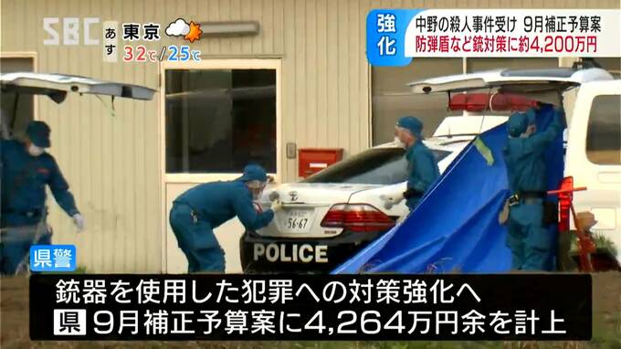 中野市で5月に男女4人が殺害された事件を受け、県は銃器を使用した犯罪への対策強化を目的に、4200万円余りを9月補正予算案に盛り込みます。