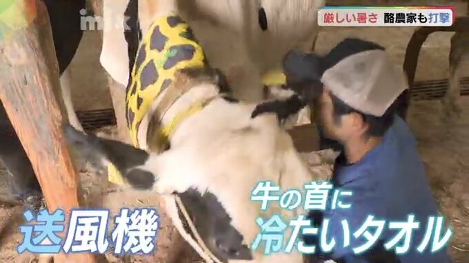 牛の負担を少しでも軽くしようと、榎本さんは送風機を常に稼働させ、牛の首に冷たいタオルを巻くなどの対策を取ってきました。