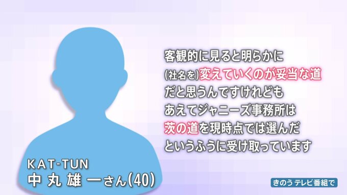 「客観的にみると明らかに(社名を)変えていくのが妥当な道だと思うんですけれども、あえてジャニーズ事務所は茨の道を現時点では選んだというふうに受け取っています」