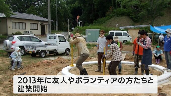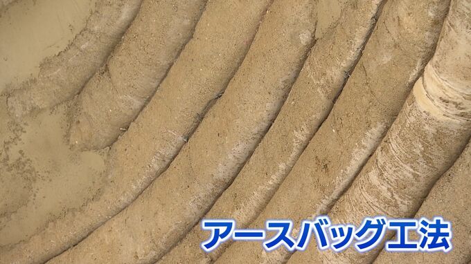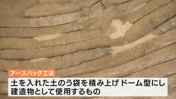 (愛甲武志さん)「これはアースバッグ工法っていうやり方なんですけど、土のう袋に土を詰めて積み重ねるっていうやり方なんです」