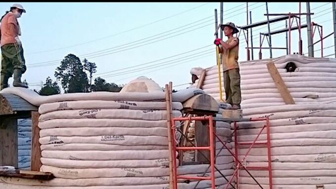 個人でも建てられるため世界各国で用いられているアースバッグ工法。