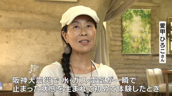 (愛甲ひろこさん)「阪神大震災で水とガスと電気がもう一瞬で全部が止まってしまった状態っていうのを生まれて初めて体験したときに、なんか自分の無力さっていうのを本当にすごく痛烈に感じて、いつか、そういう全てが止まった時でも笑って過ごせるところ。で、ここに来たらみんなが安心して、過ごせる場所っていうのを作りたいなぁって」