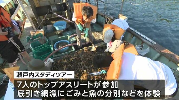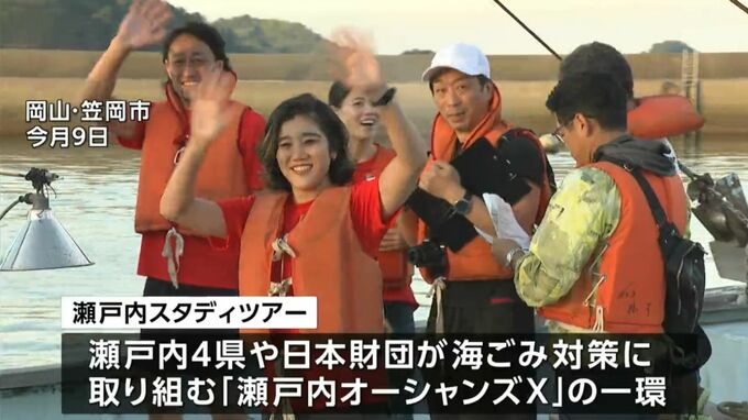 瀬戸内4県と日本財団が、海ごみ問題の啓発などに取り組む「瀬戸内オーシャンズX」の一環として行われたスタディツアーです。元新体操日本代表の松原梨恵さんら7人のトップアスリートが参加しました。