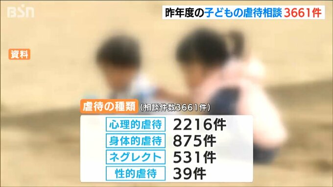 虐待の種類としては暴言や子どもの前で喧嘩をするなどの心理的虐待が2216件と最も多く、次いで身体的虐待が875件、ネグレクトが531件などとなっています。