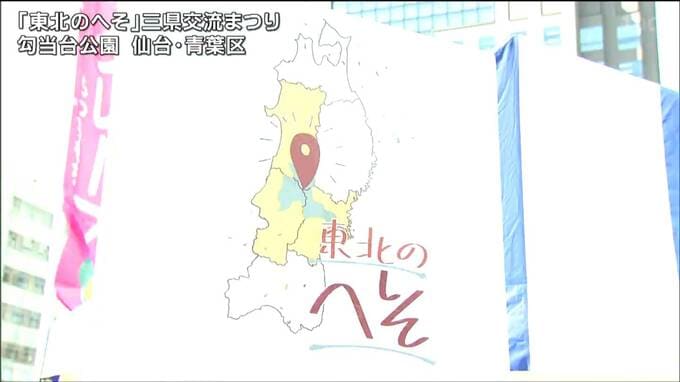 東北地方の中央、へそに位置する宮城、秋田、山形の特産品を集めた催しが12日から仙台で開かれています。仙台市青葉区の勾当台公園で始まったのは、「東北のへそ」三県交流まつりです。東北地方の中央、へそにある…