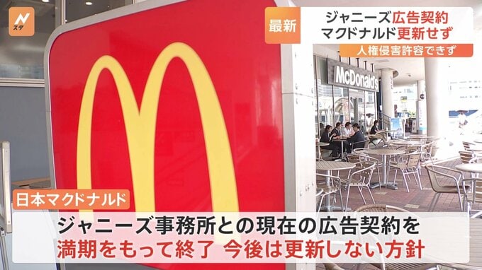 ジャニーズ事務所の創業者・ジャニー喜多川氏による性加害問題を受け、日本マクドナルドは、ジャニーズ事務所の所属タレントを起用した現在の広告契約について満期をもって終了し、今後、更新しないことを明らかに…