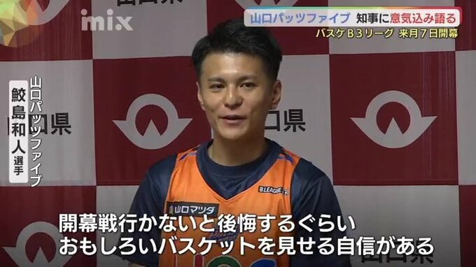 今シーズンからチーム名を「山口パッツファイブ」に変更して初めて臨むことになり鮫島選手は「リーグで一番速いバスケットボールを展開し、プレーオフ進出を目指したい」と意気込みました。