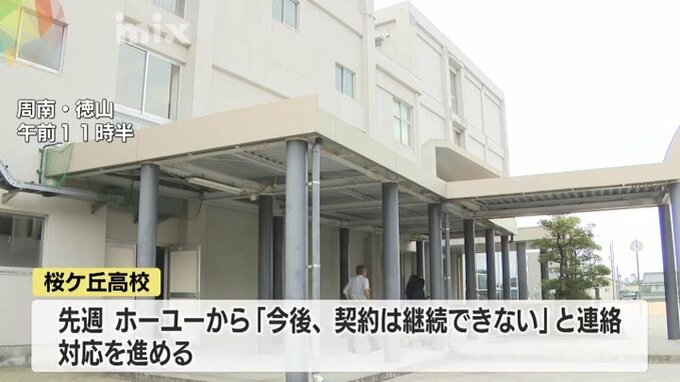 このうち桜ケ丘高校は、先週ホーユーから「今後、契約は継続できない」と連絡があり、対応を進めていました。ところがきのう夕方、ホーユーの関係者らが高校を訪れたそうです。