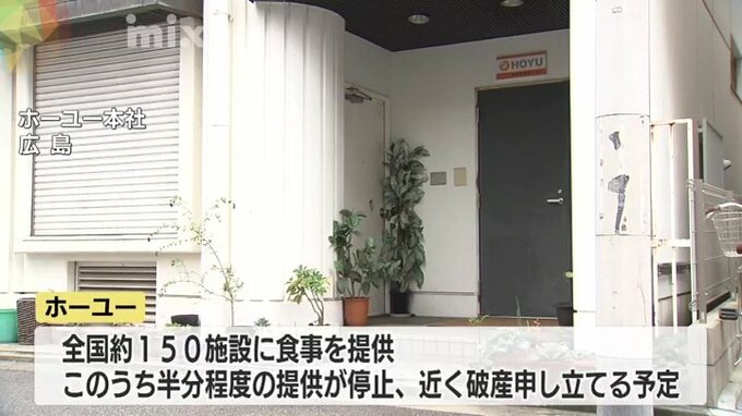 広島市の「ホーユー」は全国およそ150施設に食事を提供していまいしたが、このうち半分程度の提供が停止していて、近く破産を申し立てる予定です。