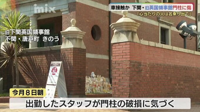 山口県下関市にある国の重要文化財に指定されている、旧下関英国領事館の門柱が破損していることがわかりました。