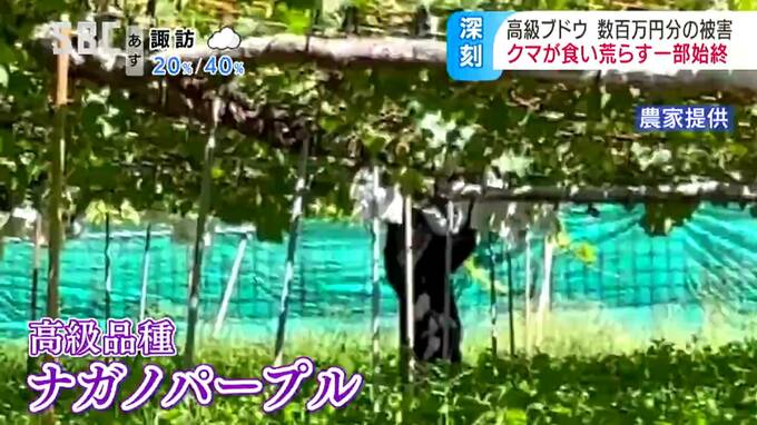 坂城町の畑で撮影された、クマがブドウを食べる瞬間の映像です。この畑では、8月末から被害が相次ぎ、被害額は数百万円に上るとみられています。坂城町の役場からおよそ2キロほどの山間部にあるブドウ畑。映像の奥…